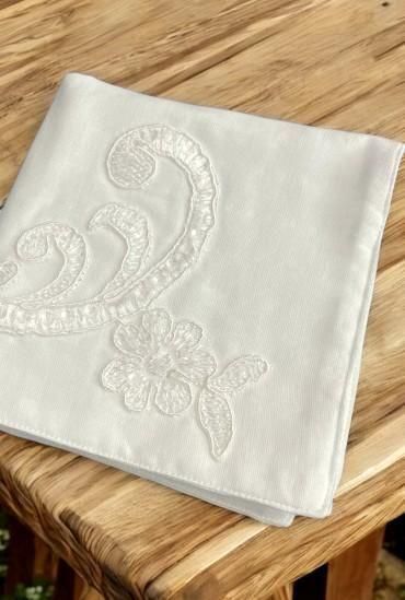 思い出のウエディングドレスをリメイクしてオリジナルの大判ハンカチに致します。